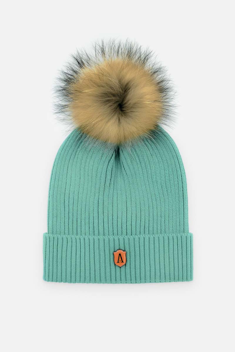 Damen Mütze aus Baumwolle mit Fellbommel